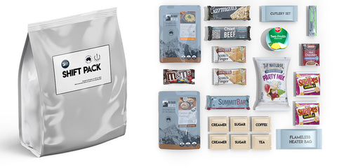 The 12hr Shift Pack is the all-rounder for emergency services. This 12-hour pack provides sustenance for a 12 shift if you are working on a fireline, in an incident management team or in a flood boat. It provides you with everything you need until you rotate shifts.