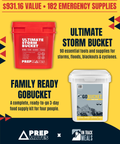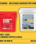 This complete emergency bundle combines Prep Mates’ 4-person Ultimate Storm Bucket — packed with 90 essential survival supplies — with On Track Meals’ Family Ready GoBucket, delivering hearty, no-prep meals for a family of four for three full days.